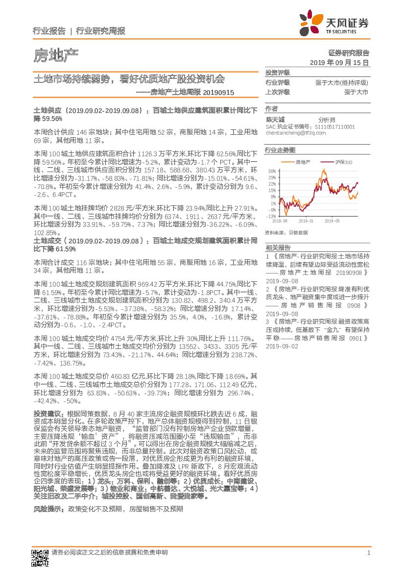 天风证券:房地产土地周报:土地市场持续弱势,看好优质地产股投资机会.pdf