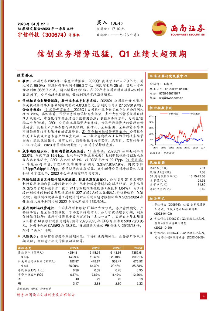 西南证券:宇信科技(300674)-信创业务增势迅猛,Q1业绩大超预期.pdf