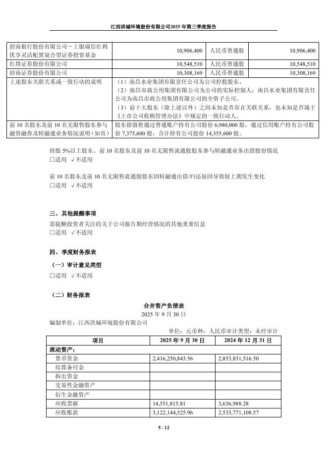 600461-洪城环境:江西洪城环境股份有限公司2025年第三季度报告.pdf
