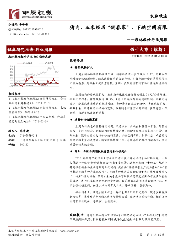 中原证券:农林牧渔行业周报:猪肉、玉米经历“倒春寒”,下跌空间有限.pdf