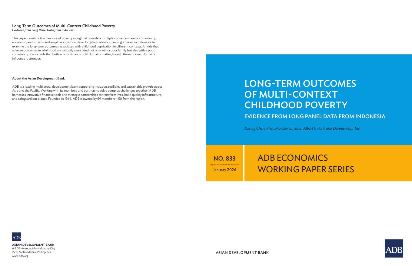 ADB亚洲开发银行:多背景儿童贫困的长期结果:来自印度尼西亚长期小组数据的证据(英文版).pdf