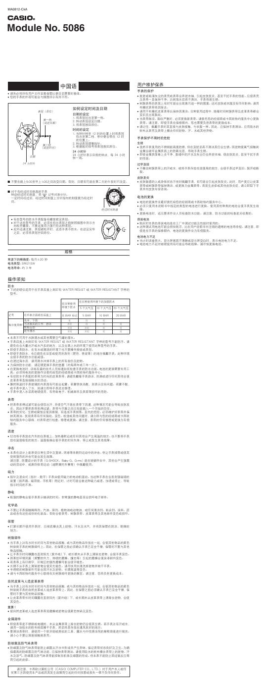 卡西欧 5086手表 使用手册.pdf