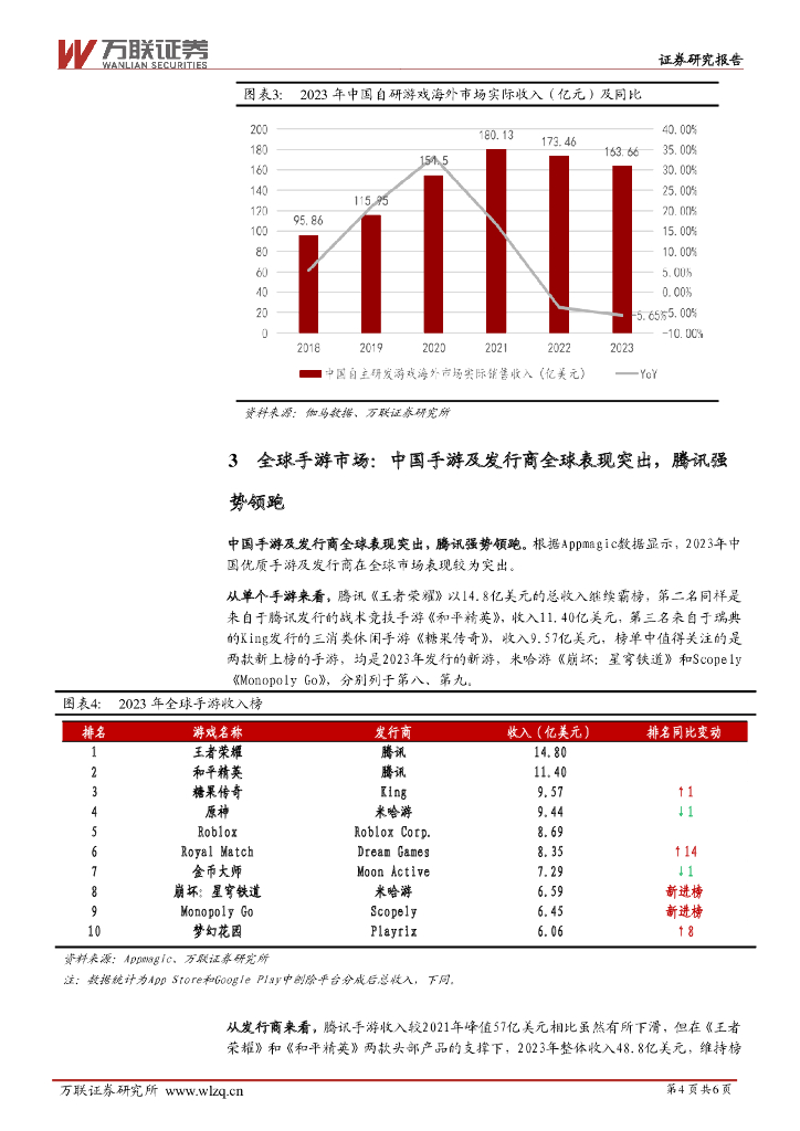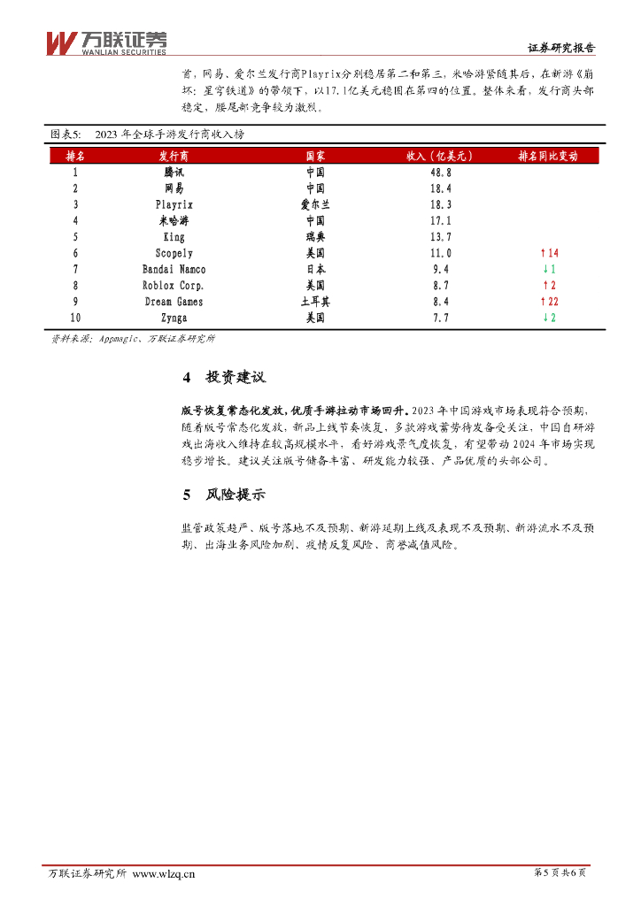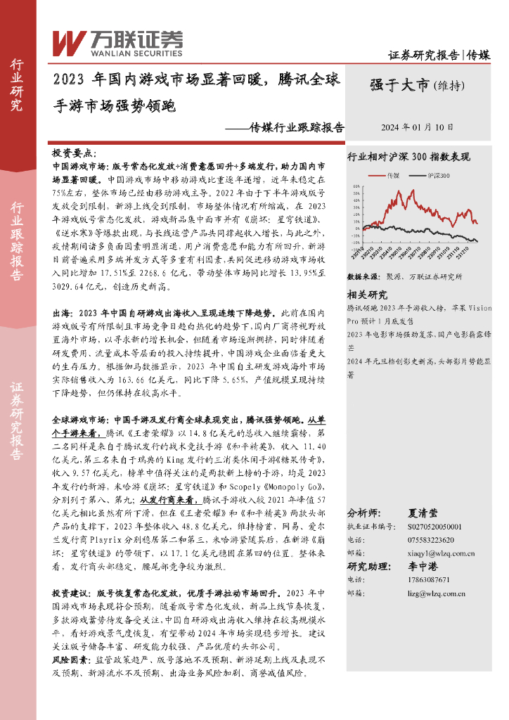 万联证券:传媒行业跟踪报告:2023年国内游戏市场显著回暖,腾讯全球手游市场强势领跑.pdf