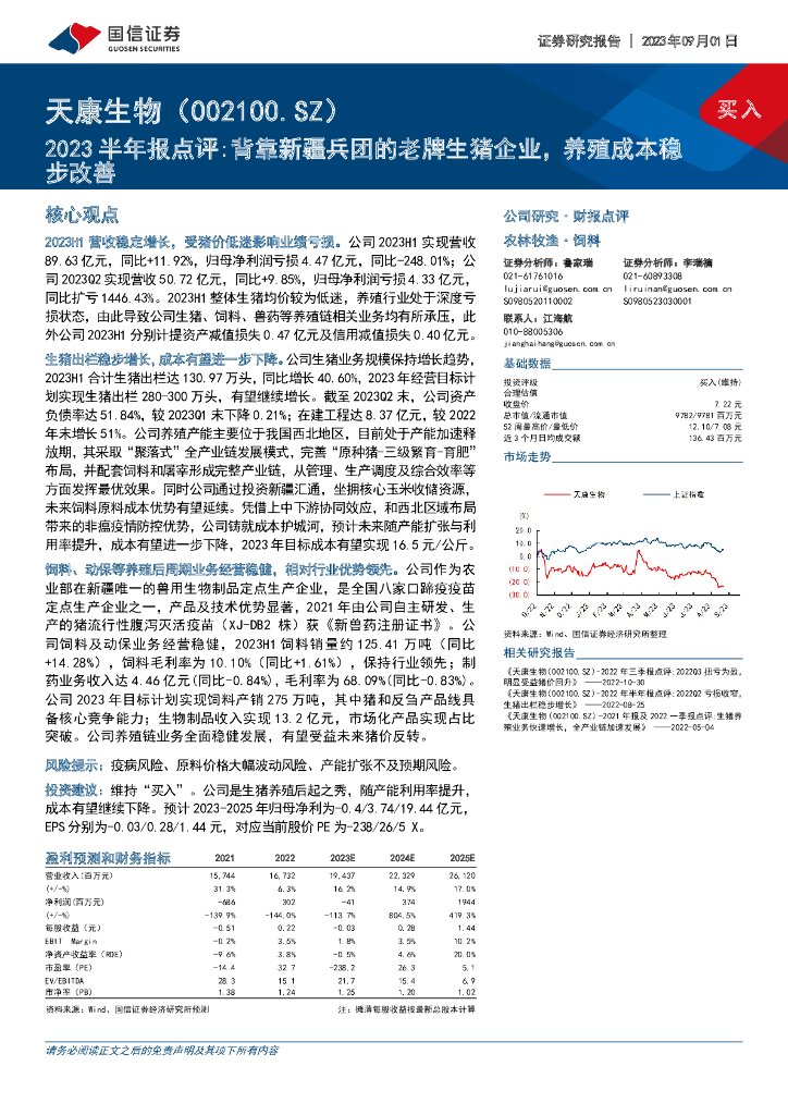 国信证券:天康生物(002100)-2023半年报点评:背靠新疆兵团的老牌生猪企业,养殖成本稳步改善.pdf