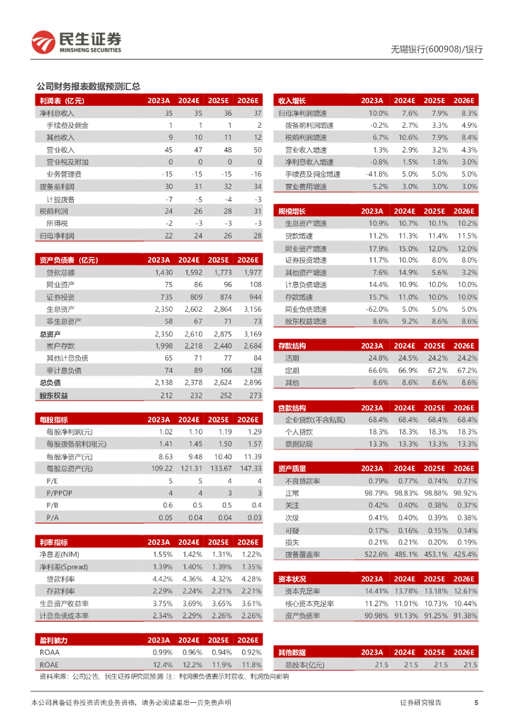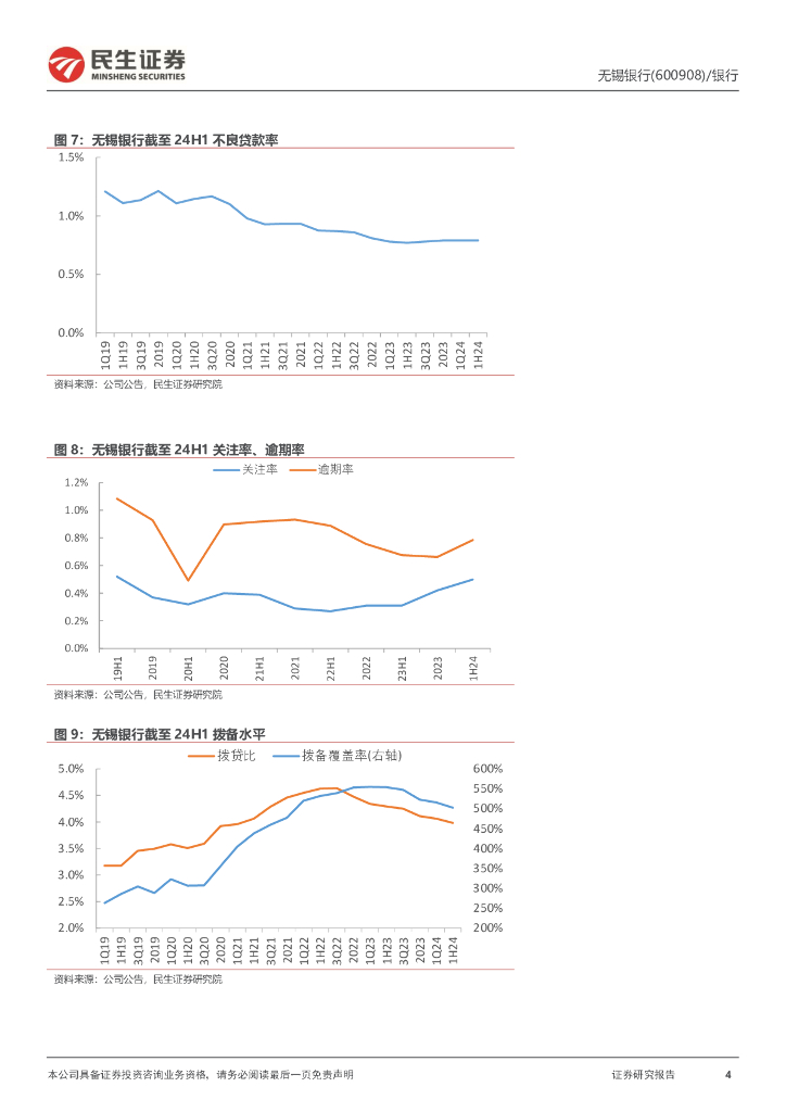 民生证券:无锡银行(600908)-2024年半年报点评:营收增速提升,资产质量稳定.pdf