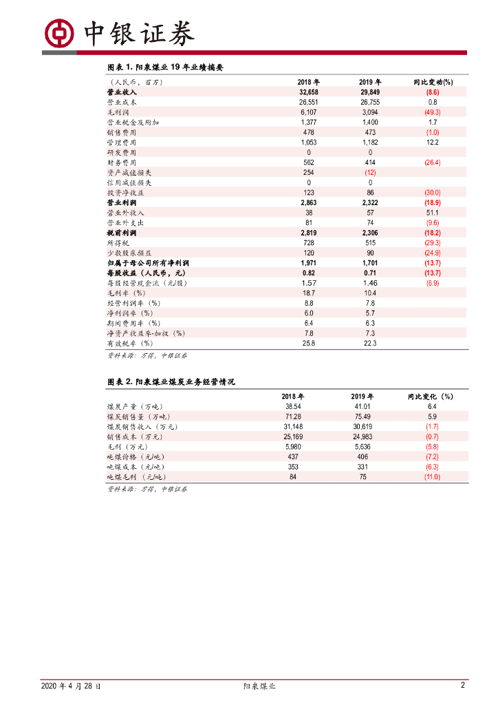 中银证券:阳泉煤业(600348)-19年业绩下滑14%,估值不贵.pdf