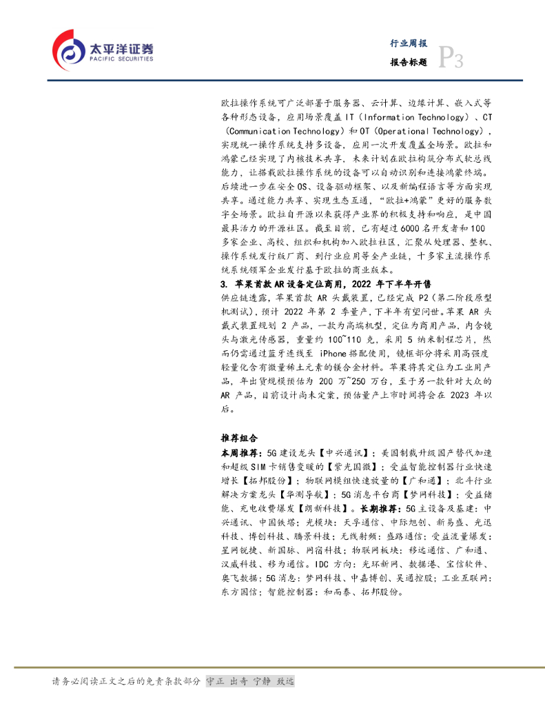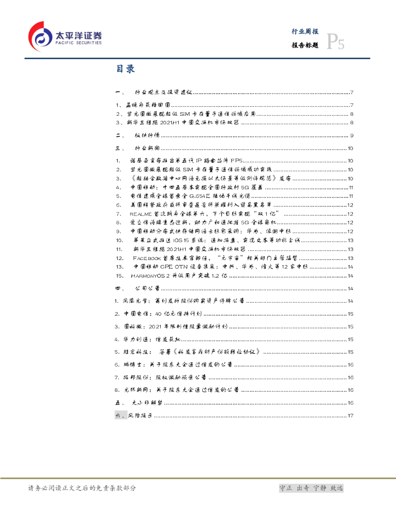 太平洋证券:通信设备Ⅲ行业周报:孟晚舟获释回国,外部环境趋缓利好5G和通信.pdf