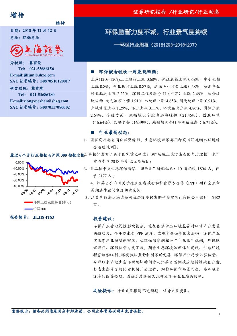 上海证券:环保行业周报:环保监管力度不减,行业景气度持续.pdf