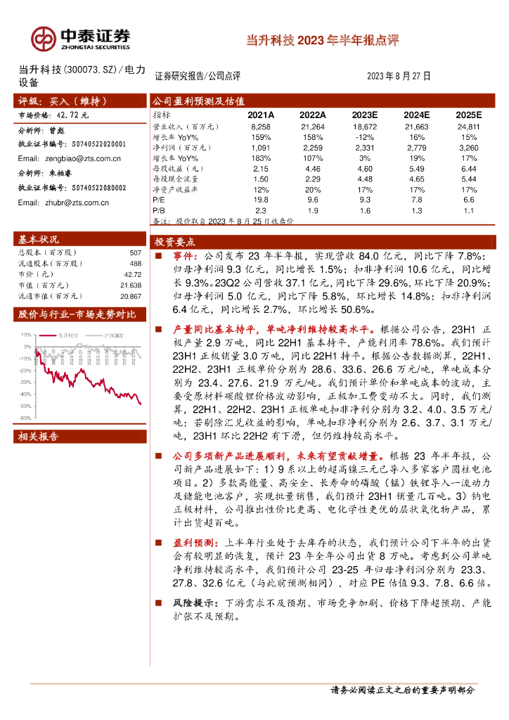 中泰证券:当升科技2023年半年报点评.pdf