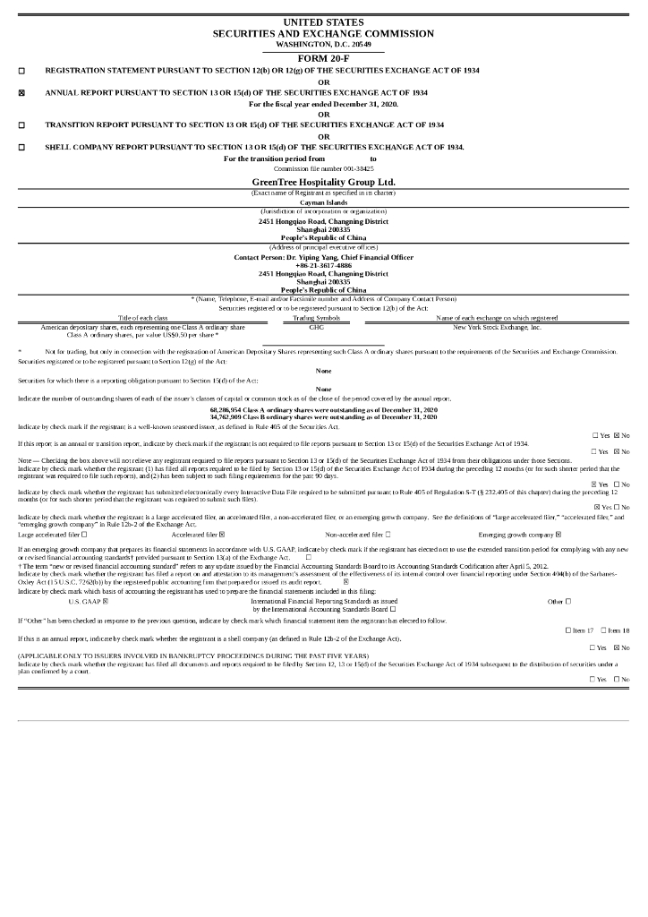GreenTree Hospitality Group Ltd.(GHG)2020财年年度报告(英文版).pdf