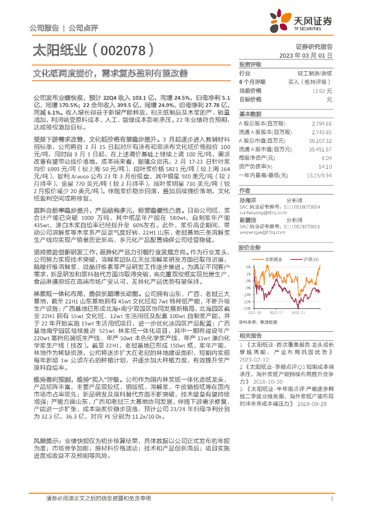 天风证券:太阳纸业(002078)-文化纸两度提价,需求复苏盈利有望改善.pdf