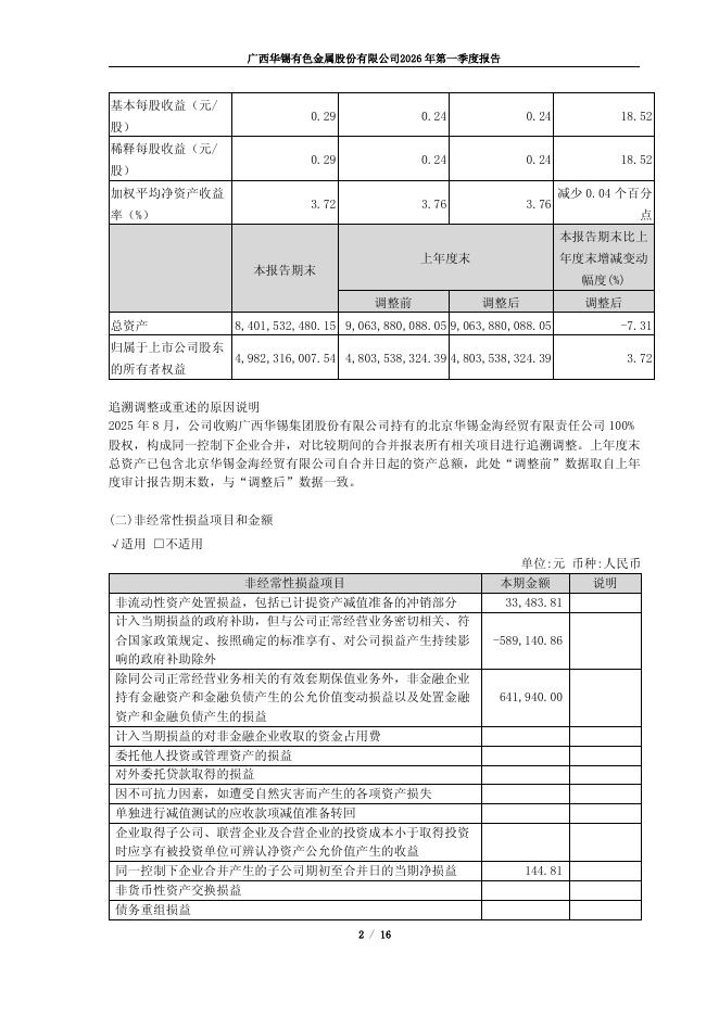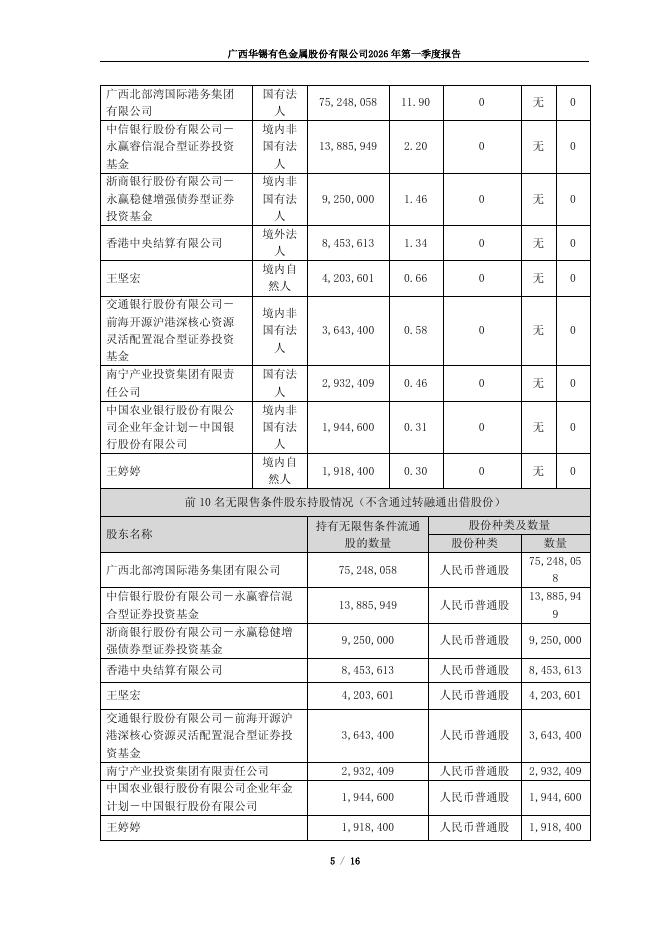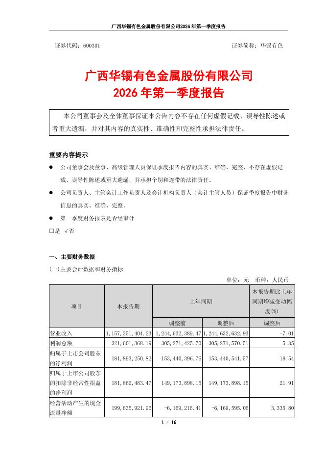 600301-华锡有色:广西华锡有色金属股份有限公司第一季度报告.pdf