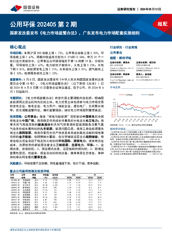 国信证券:公用环保202405第2期:国家发改委发布《电力市场监管办法》,广东发布电力市场配套实施细则.pdf