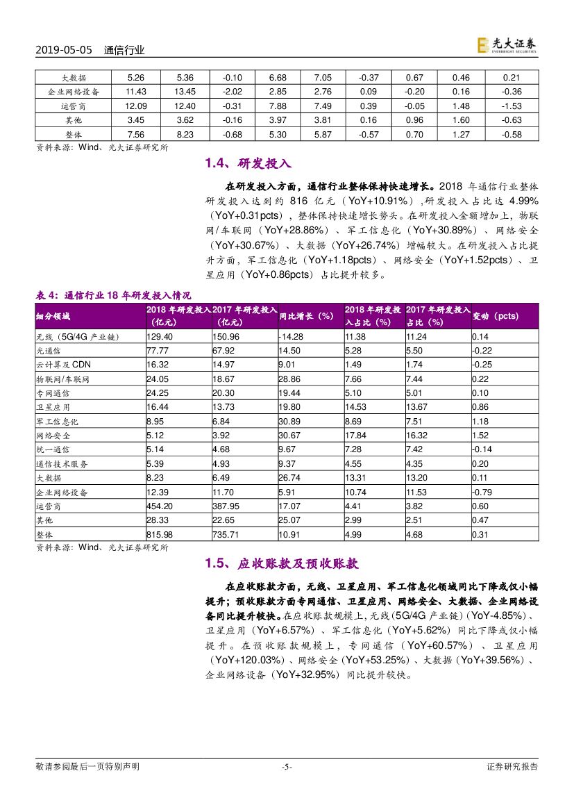 光大证券:通信行业2018年报及2019年一季报总结:业绩修复初现,持续关注优质细分领域.pdf