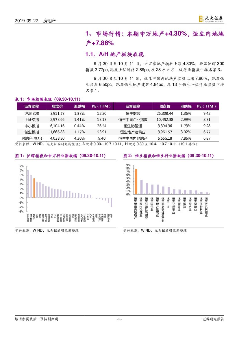 光大证券:光大地产A+H样本库动态跟踪报告(2019年第40-41周,09.28-10.11):央地财政收入划分调整,按揭利率换锚平稳过渡.pdf