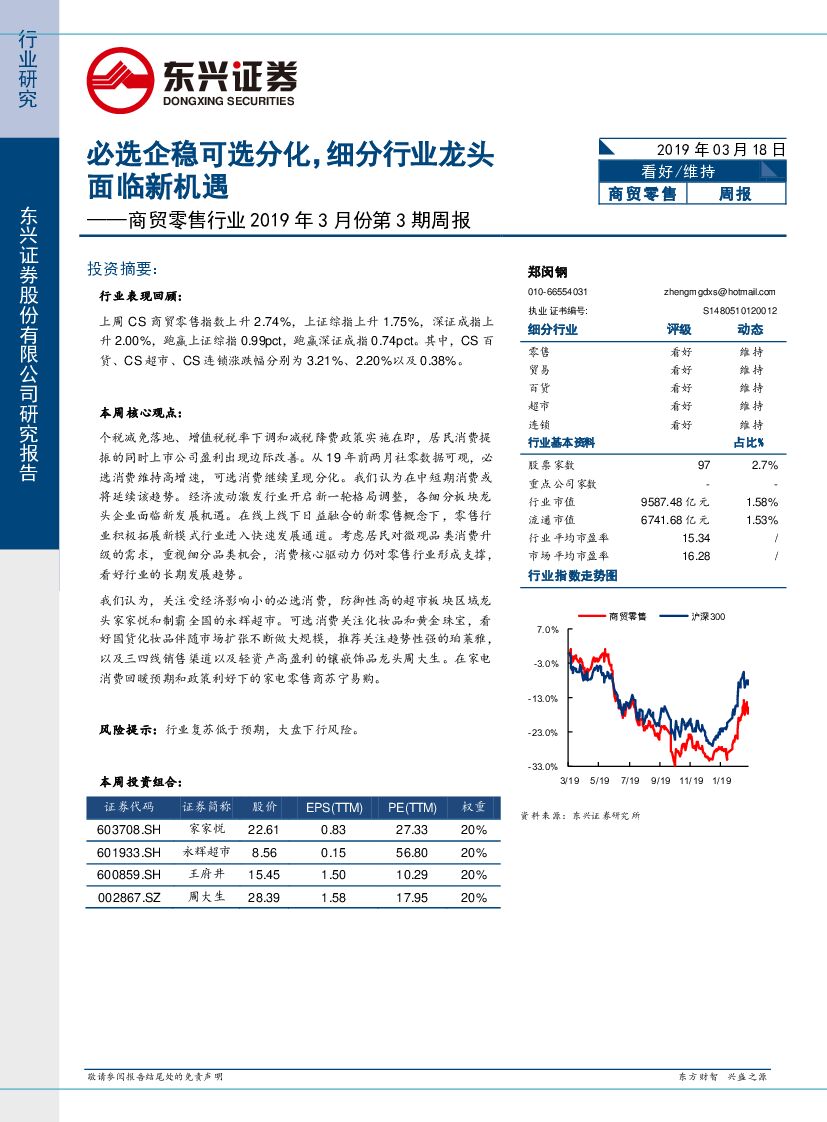东兴证券:商贸零售行业2019年3月份第3期周报:必选企稳可选分化,细分行业龙头面临新机遇.pdf