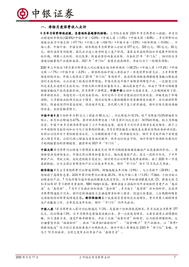 中银证券:上市险企8月保费点评:8月单月保费增速放缓,提前备战开门红。.pdf