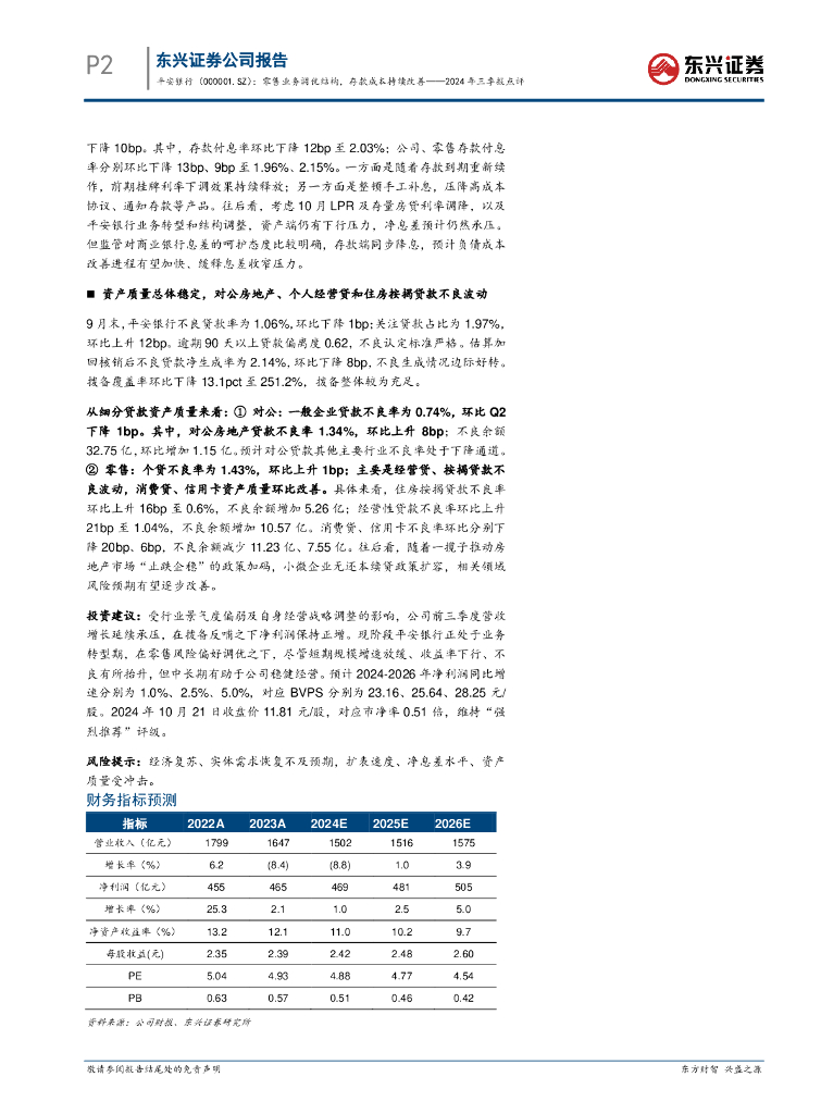 东兴证券:平安银行(000001)-2024年三季报点评:零售业务调优结构,存款成本持续改善.pdf