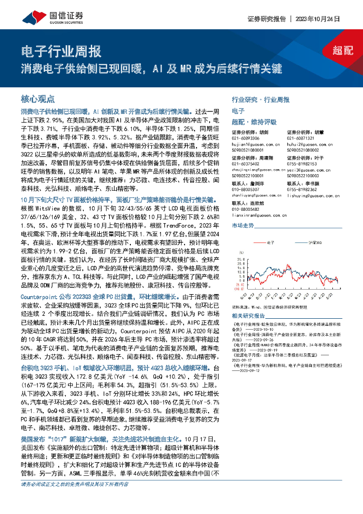 国信证券:电子行业周报:消费电子供给侧已现回暖,AI及MR成为后续行情关键.pdf