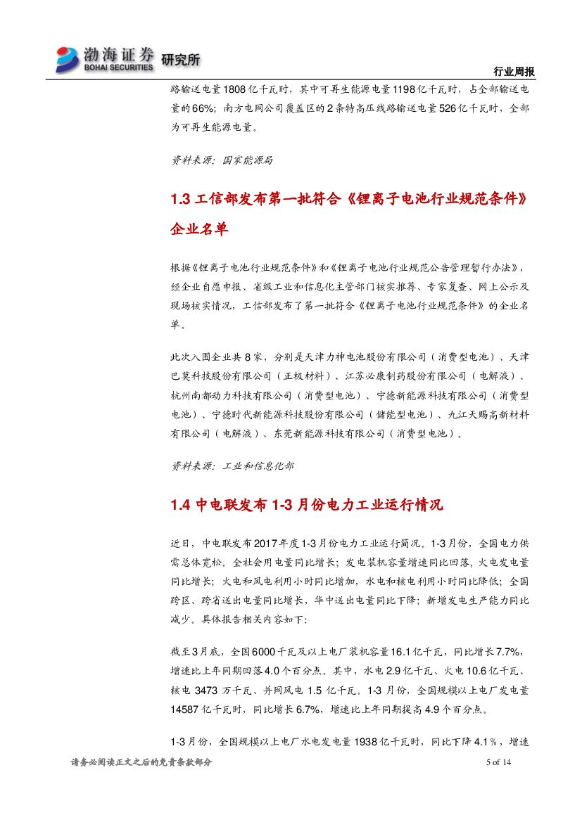 渤海证券:电力设备与新能源行业周报:工信部发布第一批符合《锂离子电池行业规范条件》企业名单.pdf