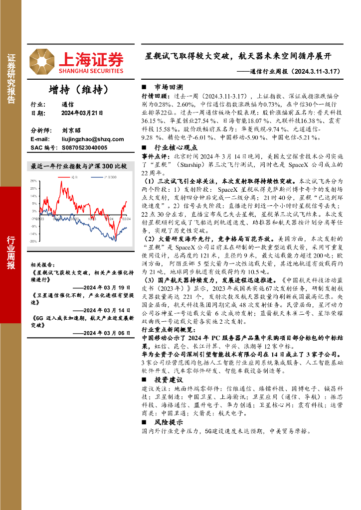 上海证券:通信行业周报:星舰试飞取得较大突破,航天器未来空间循序展开.pdf