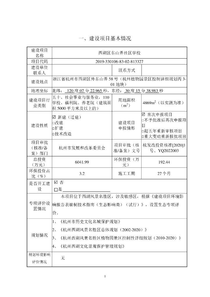 西湖区东山弄社区学校建设项目环境影响报告表(生态影响类).pdf