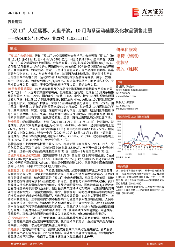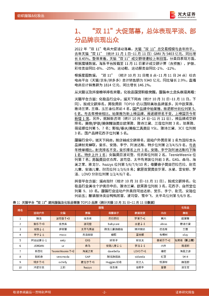 光大证券:纺织服装与化妆品行业周报:“双11”大促落幕、大盘平淡,10月淘系运动鞋服及化妆品销售走弱.pdf