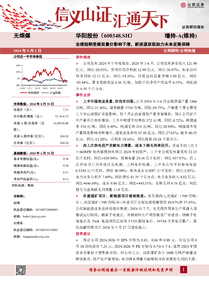山西证券:华阳股份(600348)-业绩短期受煤炭量价影响下滑,新资源获取助力未来发展保障.pdf