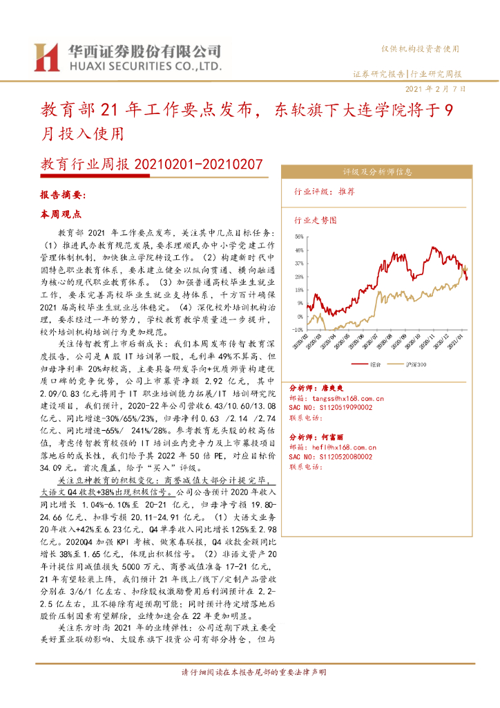 华西证券:教育行业周报:教育部21年工作要点发布,东软旗下大连学院将于9月投入使用.pdf
