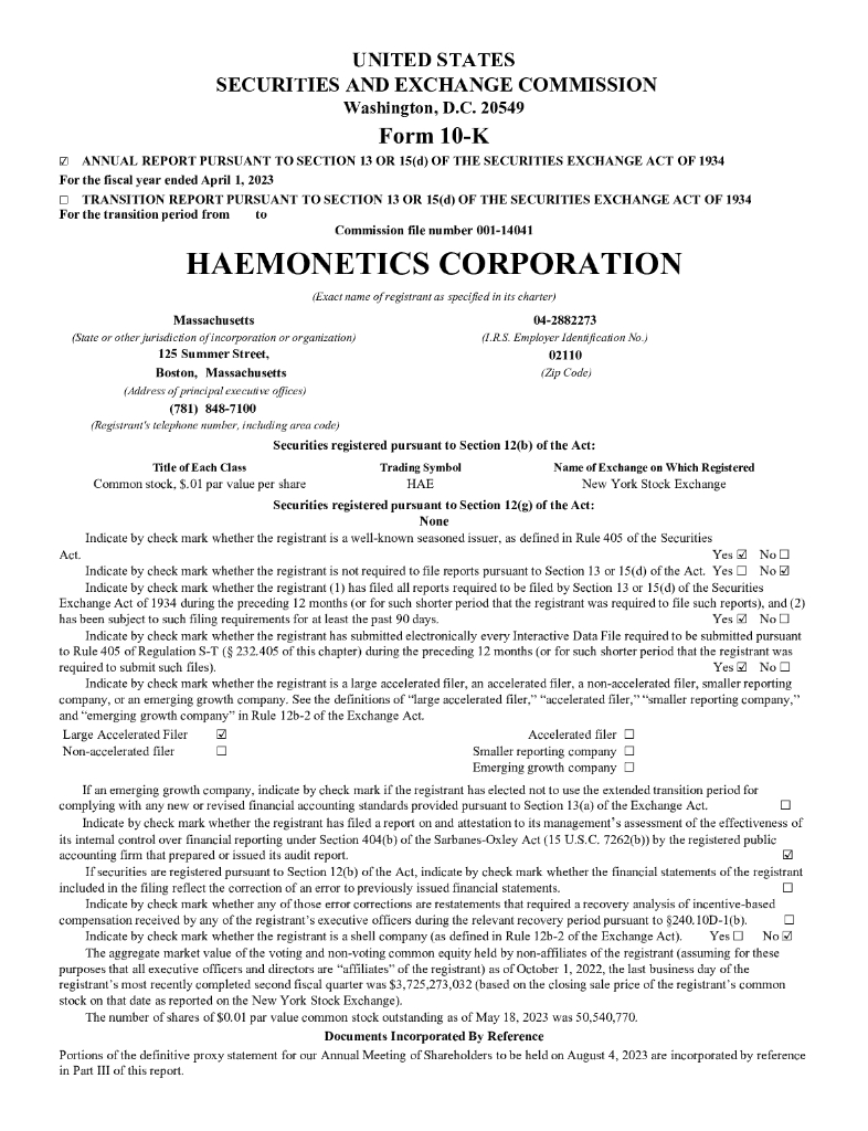 Haemonetics Corporation(HAE)2023财年年度报告(英文版).pdf