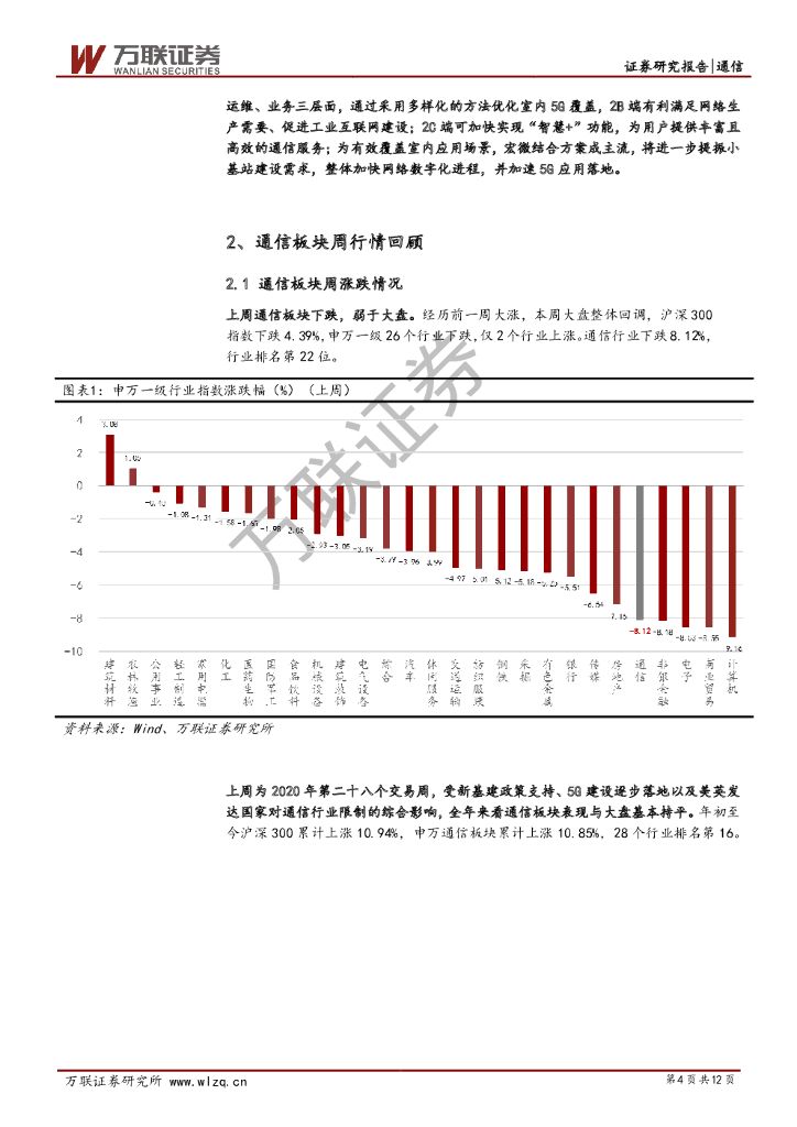 万联证券:通信行业周观点:5G室内覆盖白皮书发布,产业渗透率加速提升.pdf