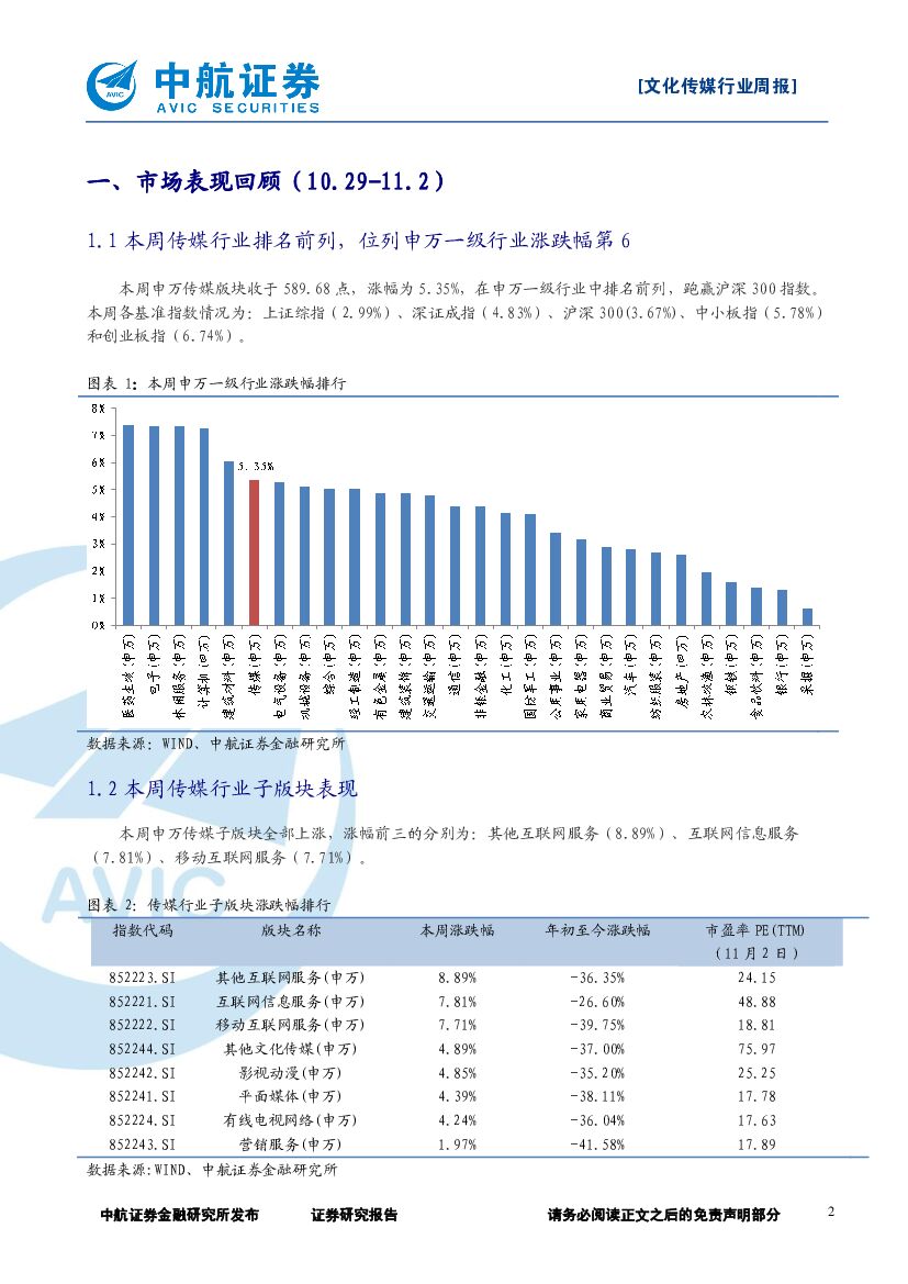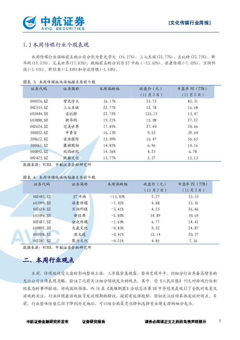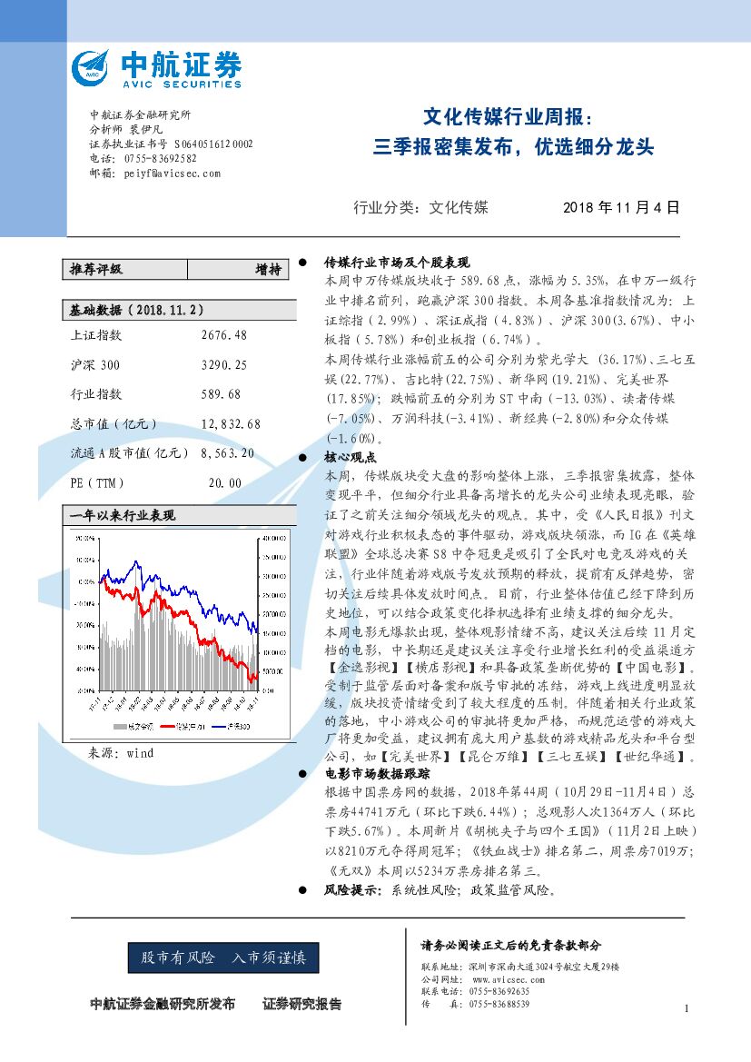 中航证券:文化传媒行业周报:三季报密集发布,优选细分龙头.pdf