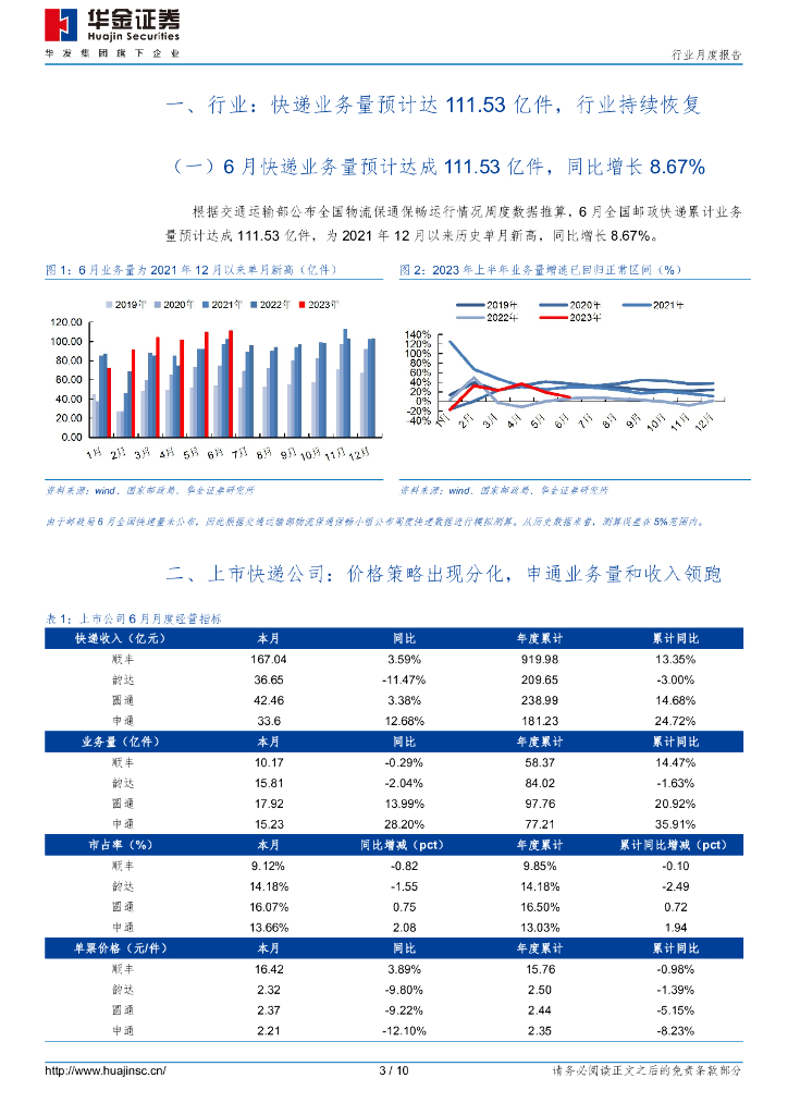 华金证券:快递行业月度报告:申通业务量高增,上市公司价格策略出现分化.pdf