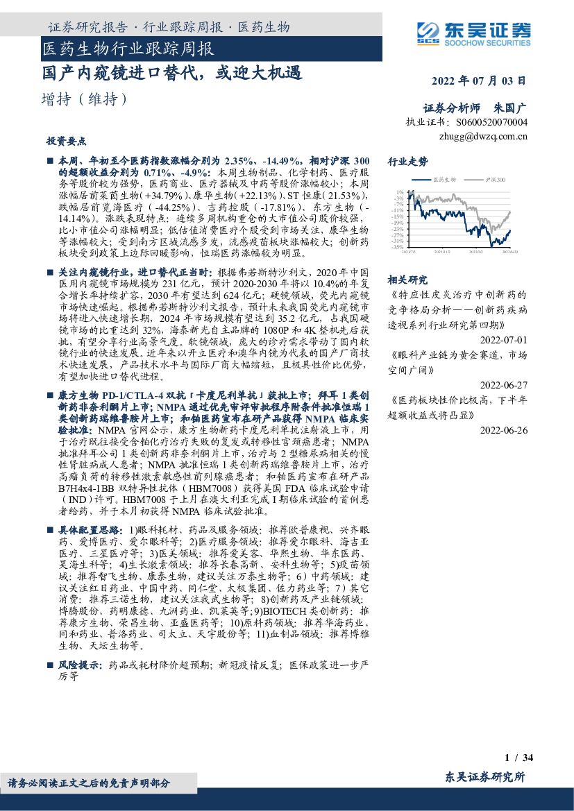 东吴证券:医药生物行业跟踪周报:国产内窥镜进口替代,或迎大机遇.pdf