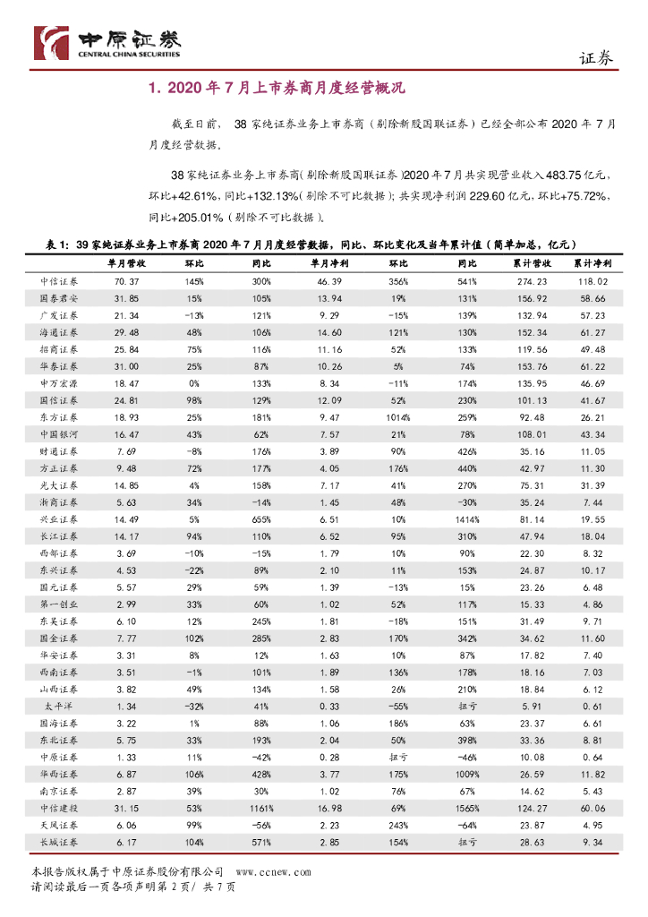 中原证券:上市券商2020年7月月报点评:在6月高基数的基础上实现进一步增长.pdf