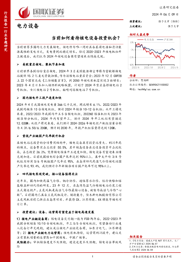 国联证券:电力设备行业专题研究:当前如何看待核电设备投资机会?.pdf