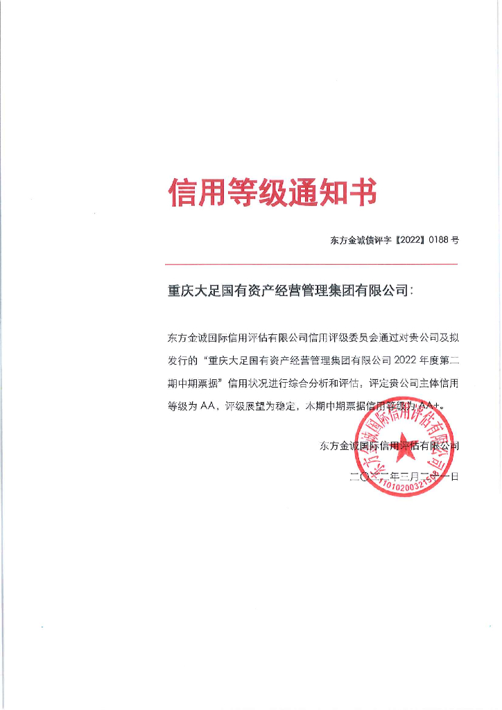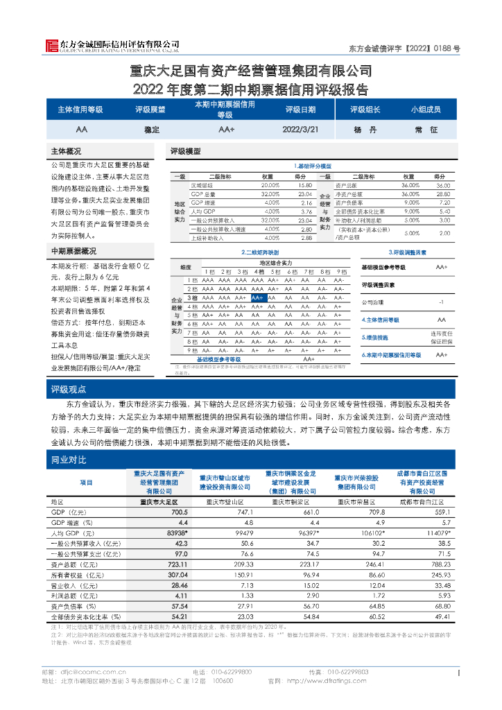 东方金诚:重庆大足国有资产经营管理集团有限公司2022年度第二期中期票据信用评级报告.pdf