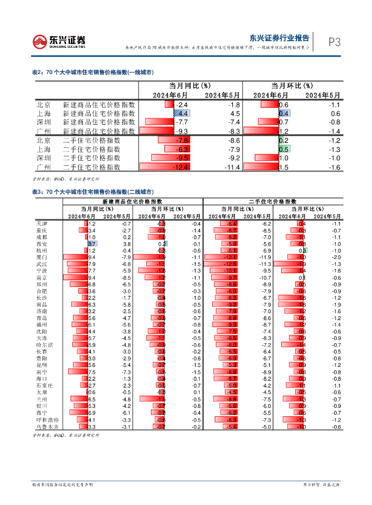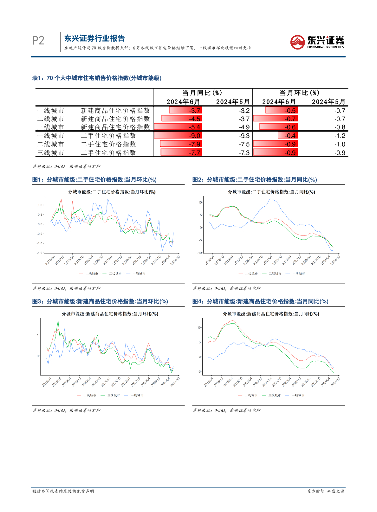 东兴证券:统计局70城房价数据点评:6月各线城市住宅价格继续下滑,一线城市环比跌幅相对更小.pdf