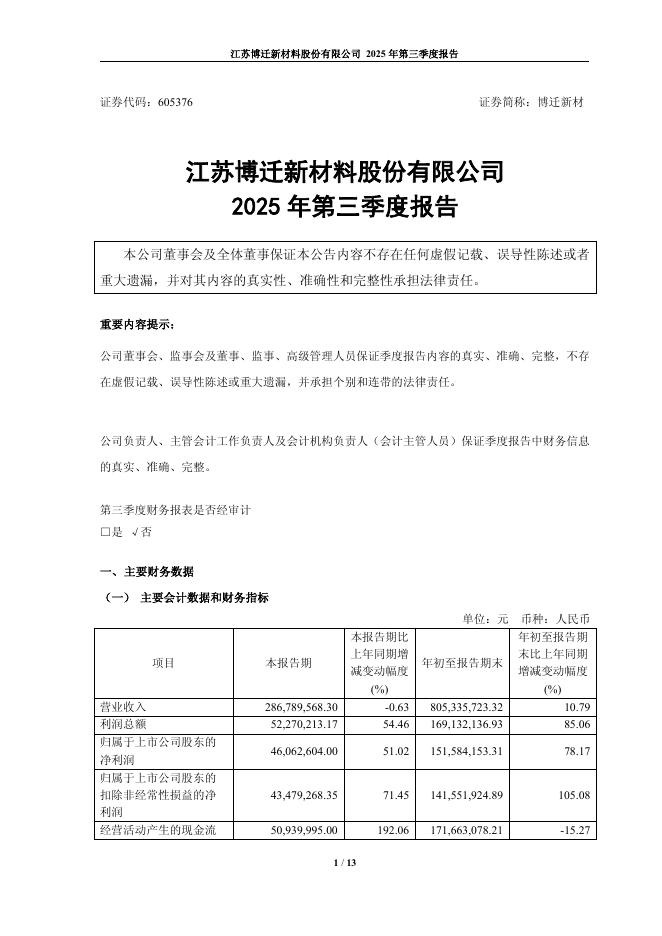 605376-博迁新材:江苏博迁新材料股份有限公司2025年第三季度报告.pdf