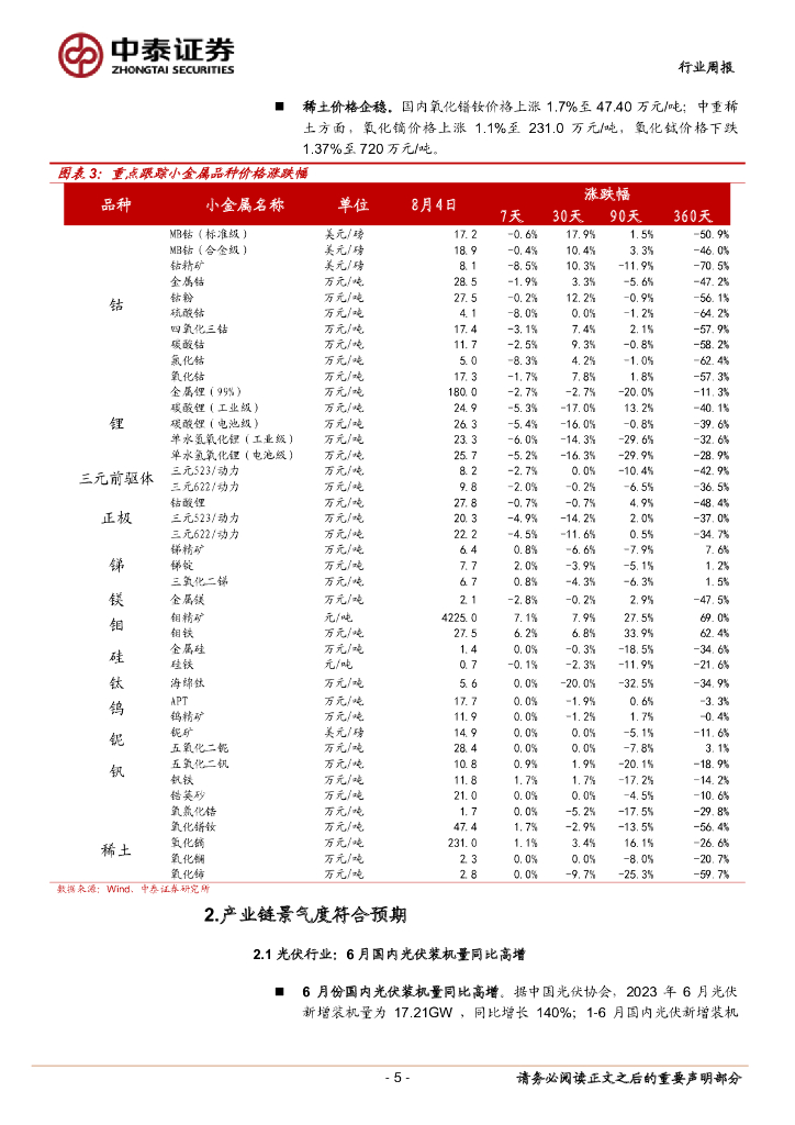 中泰证券:有色金属行业周报:北方稀土8月挂牌价持稳,静待需求复苏.pdf