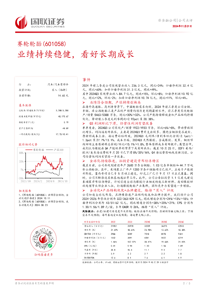 国联证券:赛轮轮胎(601058)-业绩持续稳健,看好长期成长.pdf