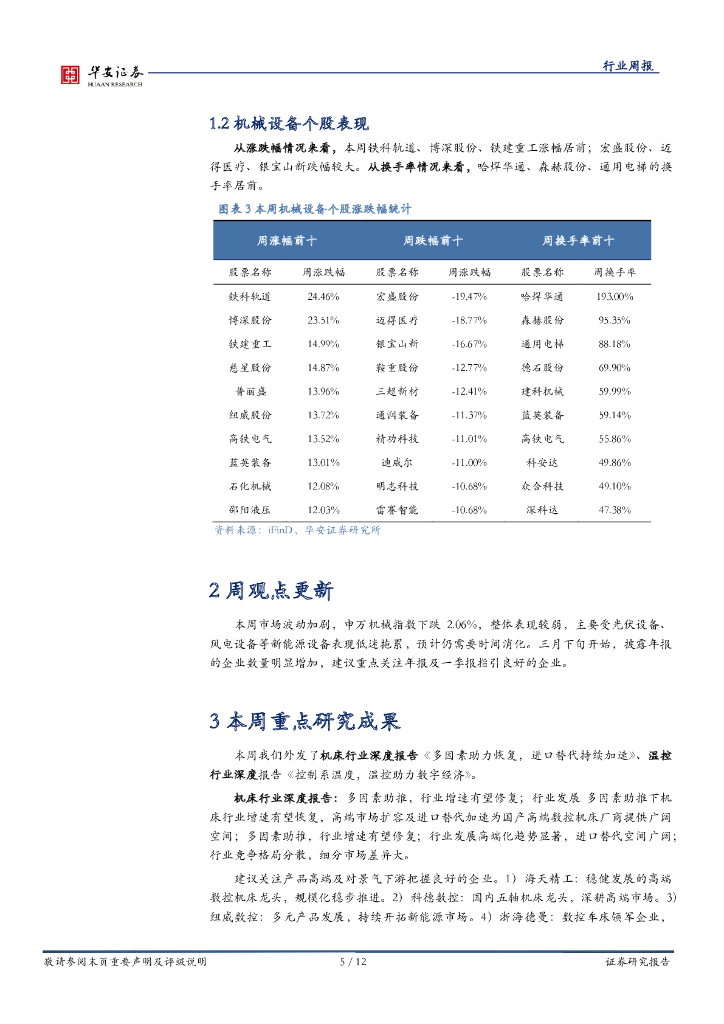 华安证券:机械设备行业周报:机械板块受新能源下跌拖累,表现较弱.pdf