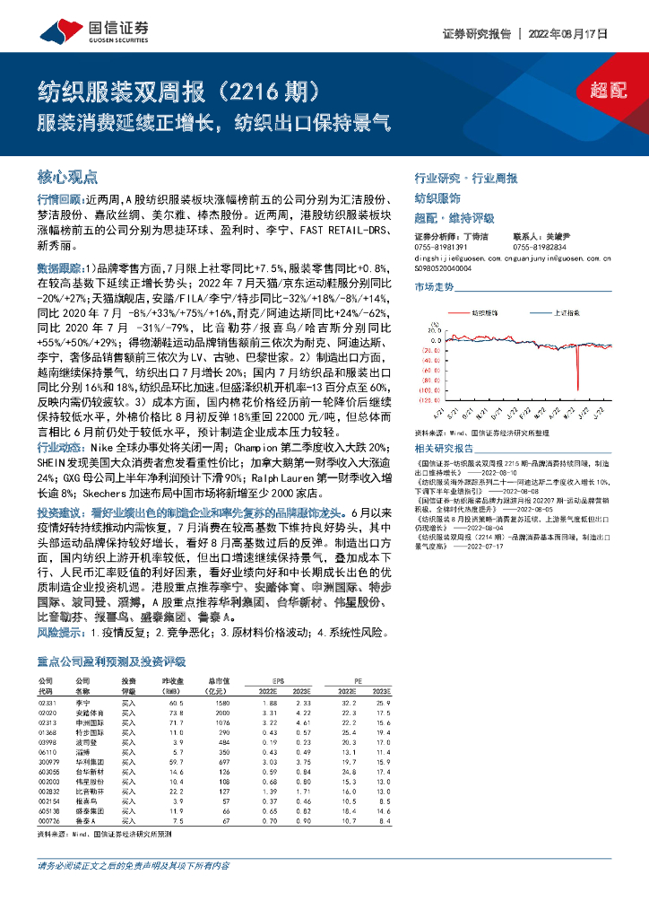 国信证券:纺织服装双周报(2216期):服装消费延续正增长,纺织出口保持景气.pdf