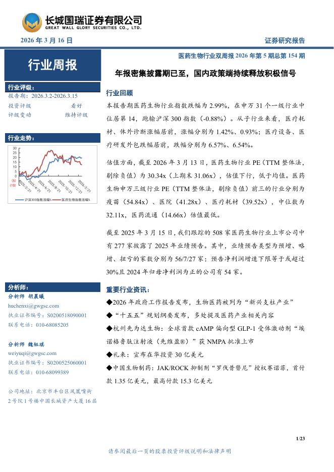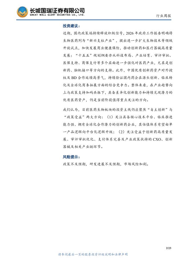长城国瑞证券:医药生物行业周报:医药生物行业双周报2026年第5期总第154期年报密集披露期已至,国内政策端持续释放积极信号.pdf