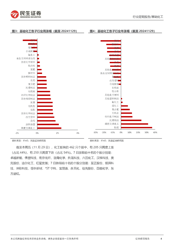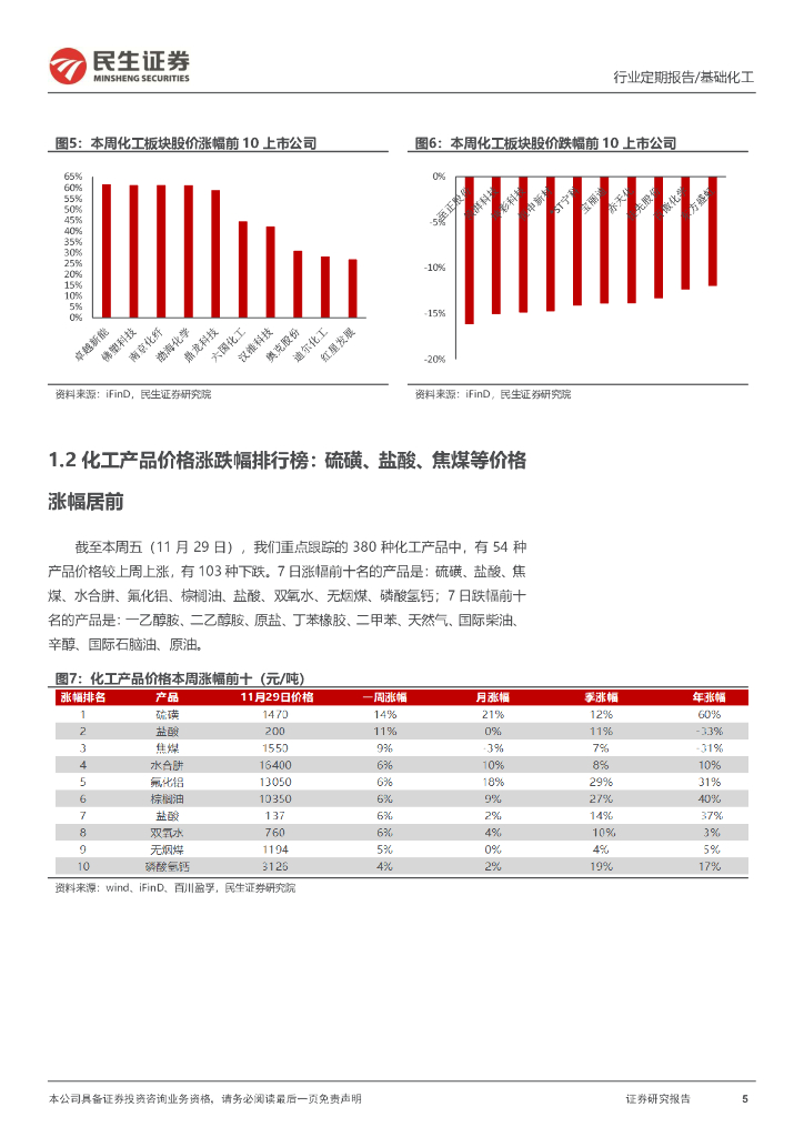 民生证券:化工行业周报(-):硫磺、盐酸等涨幅靠前,关注印尼明年起执行B40生物柴油政策.pdf