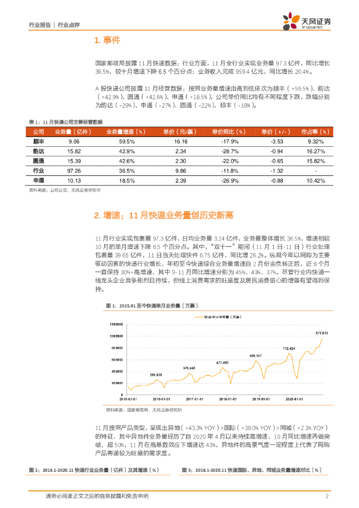 天风证券:物流行业点评:快递十一月业务量创历史新高.pdf