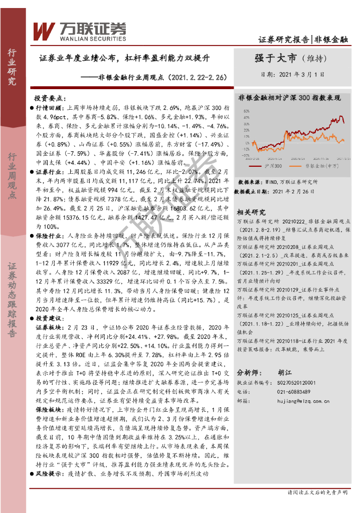 万联证券:非银金融行业周观点:证券业年度业绩公布,杠杆率盈利能力双提升.pdf