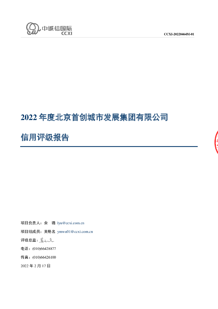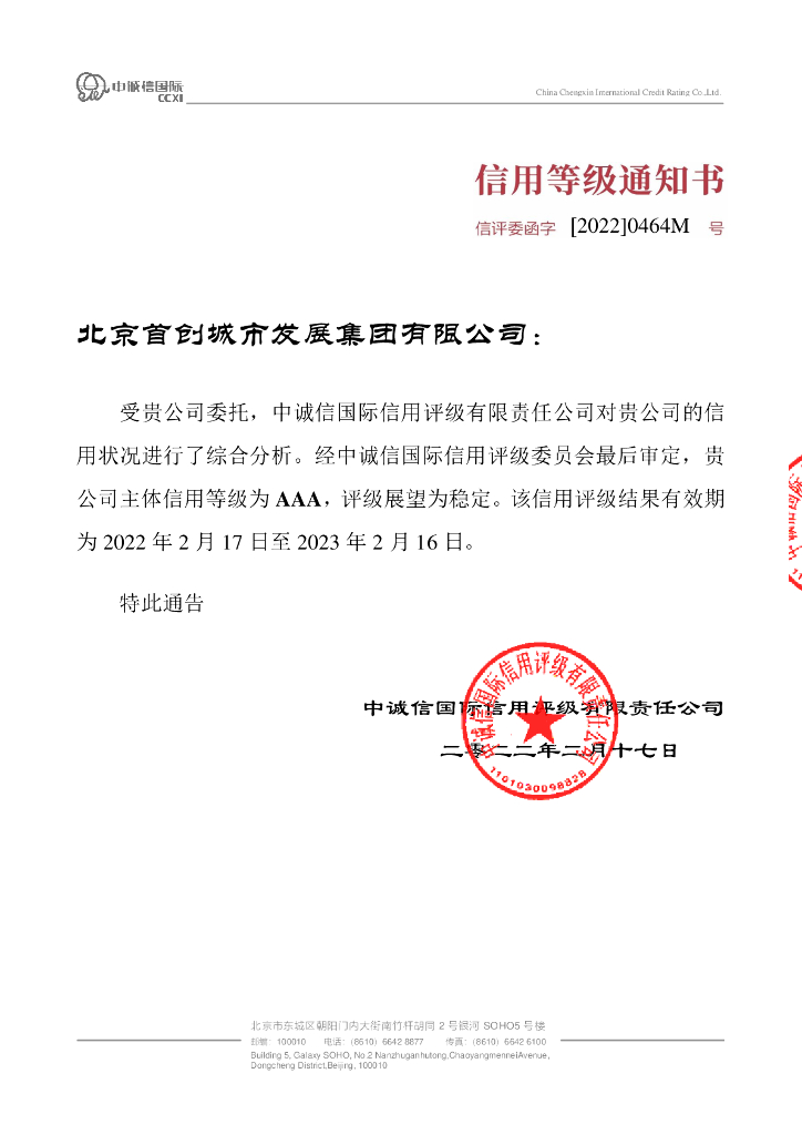 中诚信:2022年度北京首创城市发展集团有限公司信用评级报告.pdf
