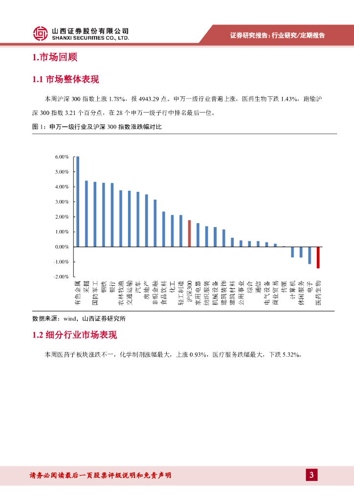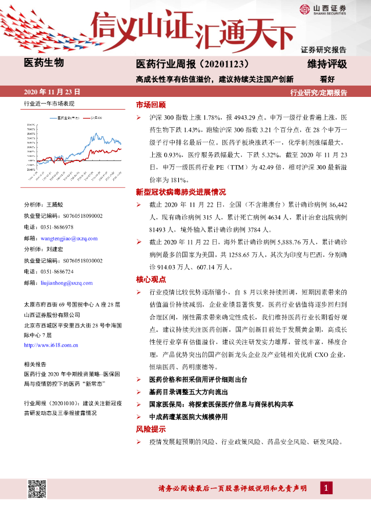 山西证券:医药行业周报:高成长性享有估值溢价,建议持续关注国产创新.pdf
