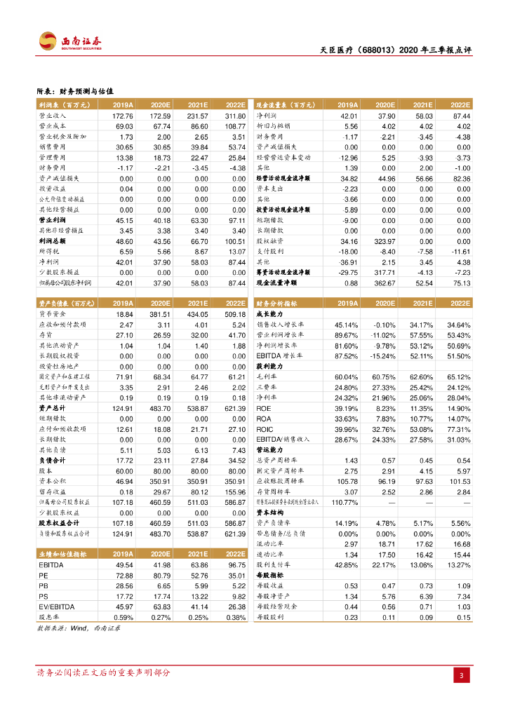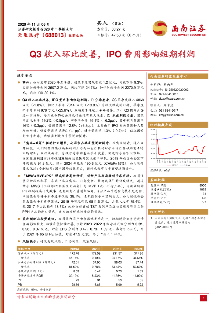 西南证券:天臣医疗(688013)-2020年三季报点评:Q3收入环比改善,IPO费用影响短期利润.pdf